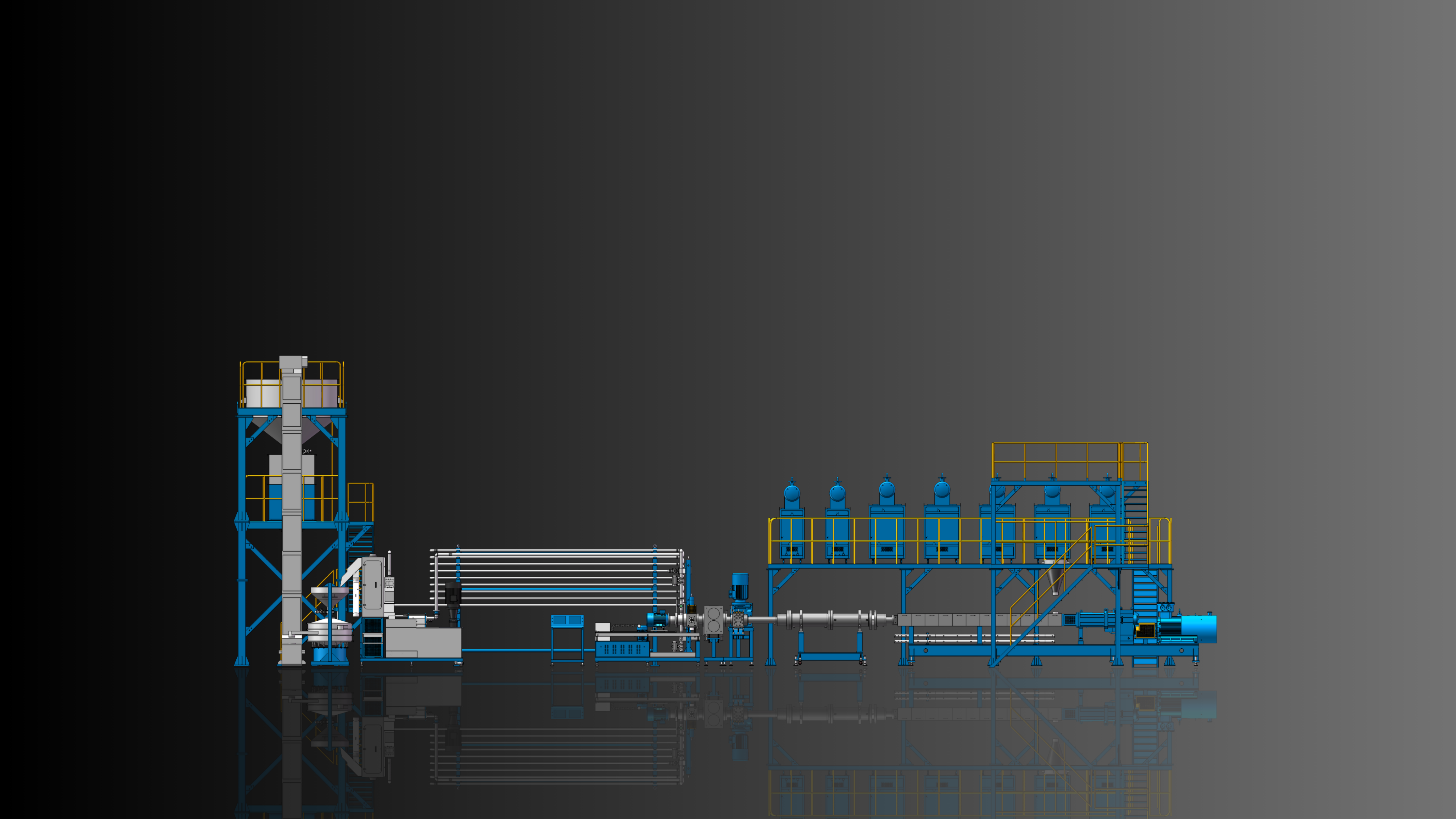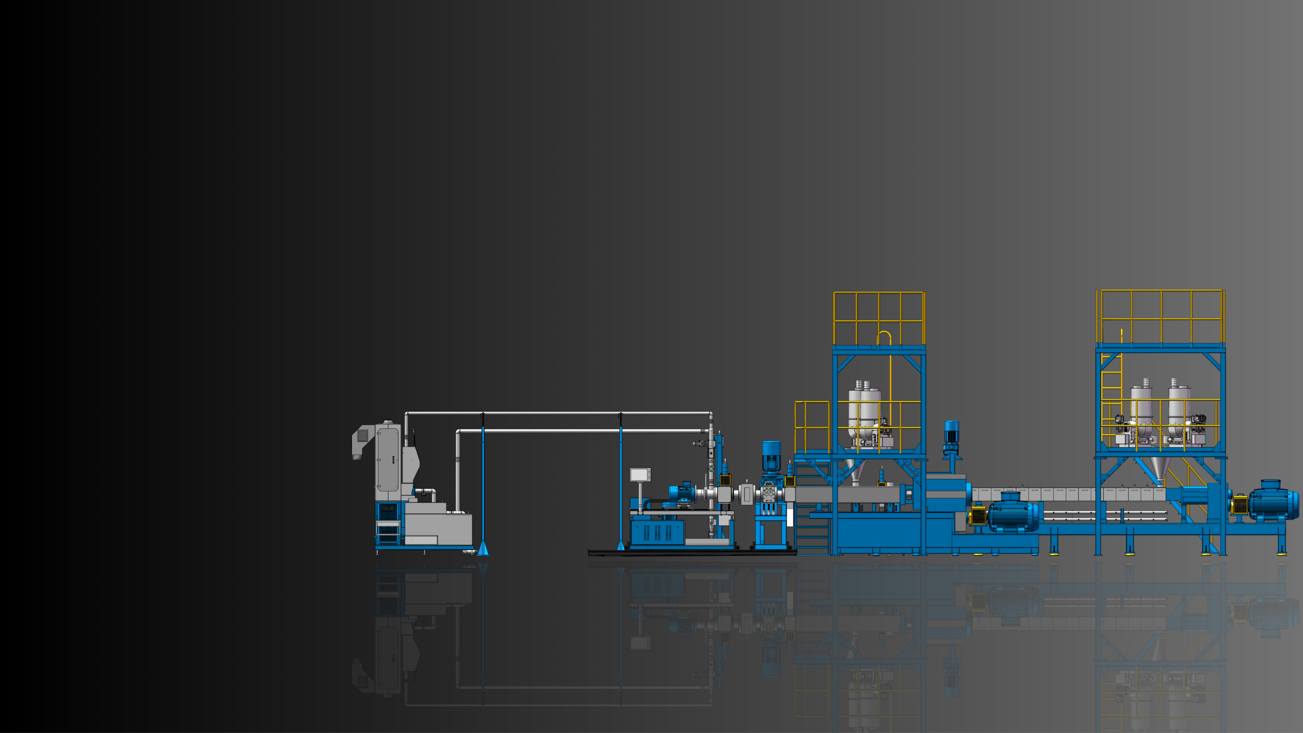 Suitable for all materials, with a production capacity of 200–15,000 kg/h. Equipped with hydraulic/pneumatic cutter, German-imported pneumatic valve core, Siemens PLC touchscreen, ABB inverter, and oversized filter tank. The system is well-configured, easy to operate, and ensures stable long-term operation.
